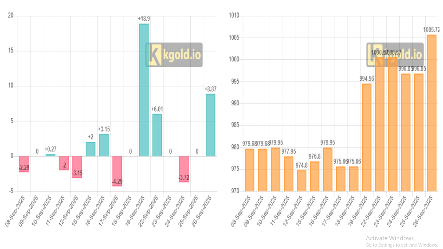 Ngược lại, vàng nhẫn ghi nhận diễn biến ổn định hơn, phản ánh đúng đặc tính gắn liền với nhu cầu tích trữ và tiêu dùng trong nước. Trong tuần, giá vàng nhẫn 4 số 9 tại Bảo Tín Minh Châu chỉ dao động trong biên độ hẹp, với mức tăng 600.000 đồng/lượng vào ngày 22/09 và giảm 500.000 đồng/lượng vào ngày 26/09. Dù cùng chịu áp lực điều chỉnh cuối tuần, biên độ biến động nhỏ của vàng nhẫn cho thấy thị trường này ít chịu ảnh hưởng từ đầu cơ ngắn hạn, thay vào đó được nâng đỡ bởi nhu cầu thực tế từ người dân. Sự khác biệt này cho thấy trong khi vàng miếng SJC phản ánh dòng tiền đầu cơ và tâm lý thị trường quốc tế, thì vàng nhẫn vẫn giữ được tính ổn định, phù hợp hơn với mục tiêu tích trữ dài hạn và tiêu dùng nội địa.