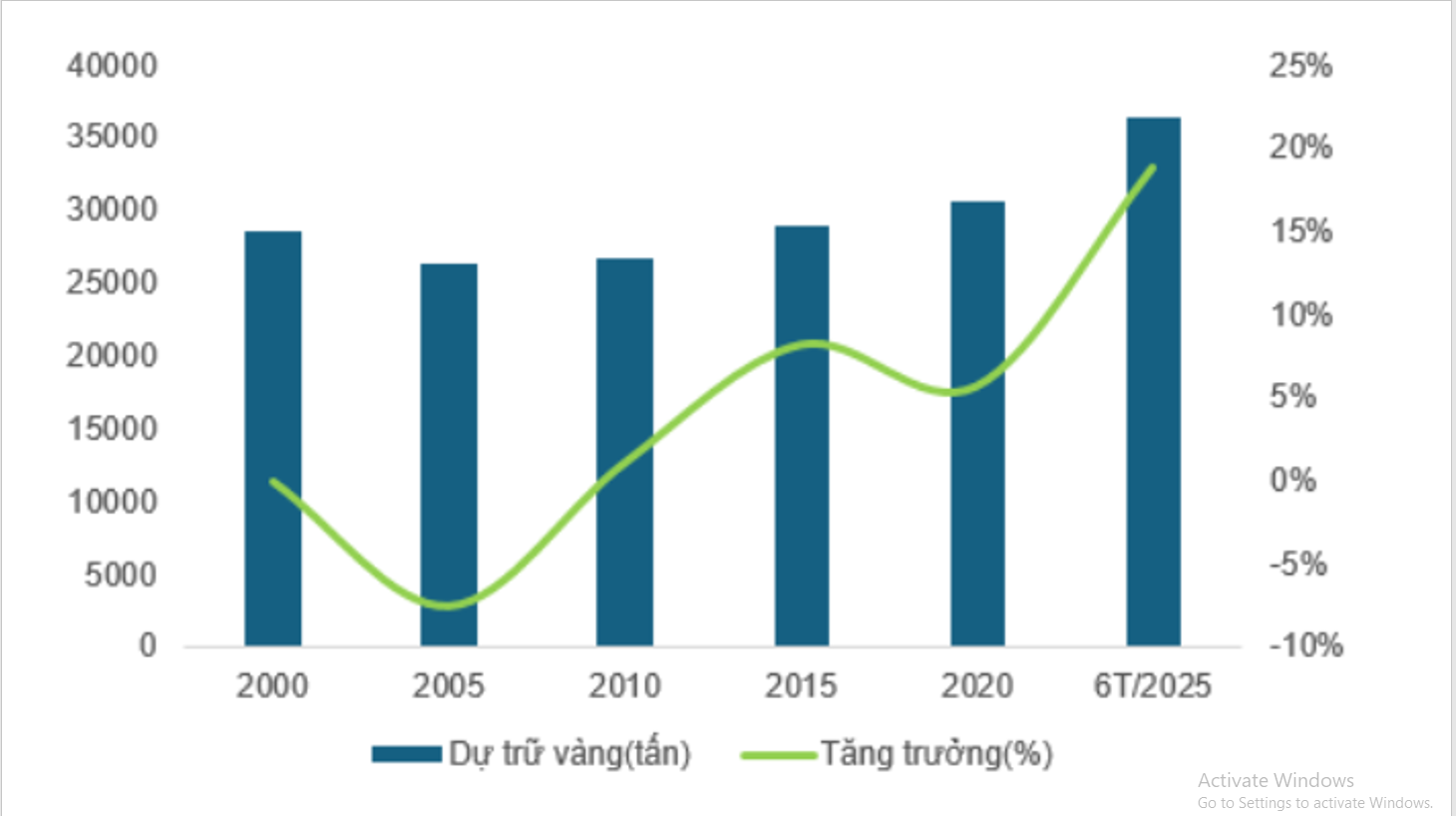Lượng dữ trữ vàng của các NHTW(2000-2025)