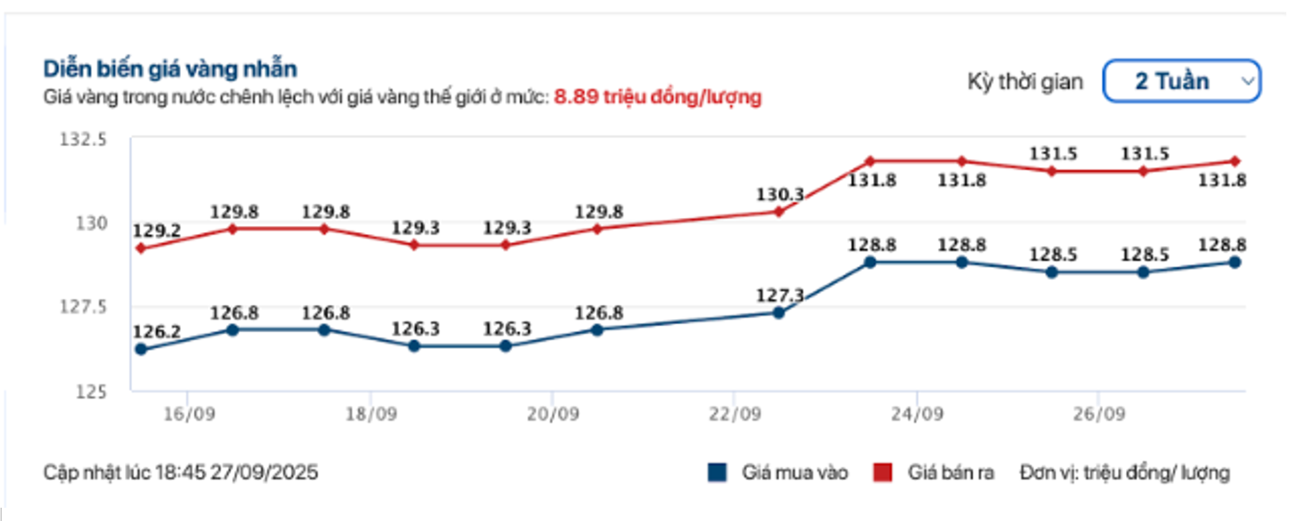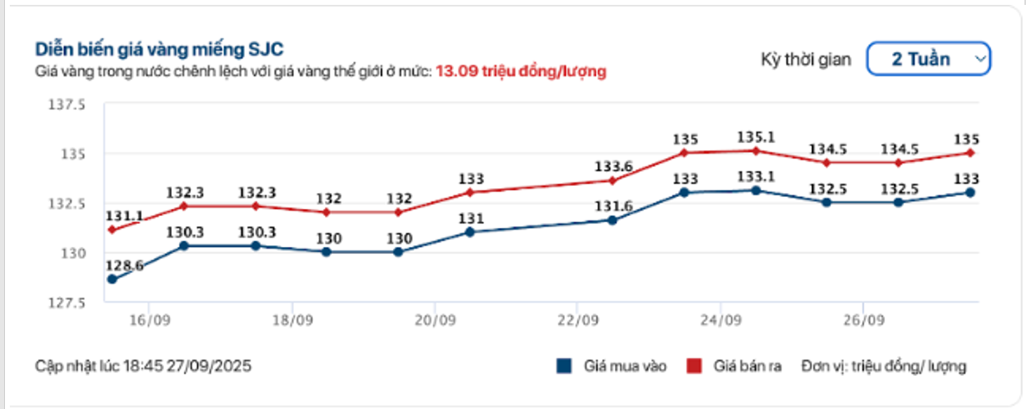 - Triển vọng: Giá SJC đạt đỉnh 135 triệu đồng/lượng nhưng cao hơn thế giới tới 14–15 triệu đồng, phản ánh lực đầu cơ mạnh và tâm lý hưng phấn. Dù có thể rung lắc ngắn hạn, vàng quốc tế vẫn trong xu hướng tăng trung – dài hạn nhờ Fed cắt giảm lãi suất, ngân hàng trung ương mua ròng và rủi ro địa chính trị. Điều này sẽ tiếp tục lan tỏa sang thị trường Việt Nam.Tuy nhiên, chênh lệch lớn này tiềm ẩn rủi ro chốt lời nếu giá quốc tế đảo chiều. Vàng nhẫn ổn định hơn, chủ yếu phục vụ nhu cầu tích trữ.