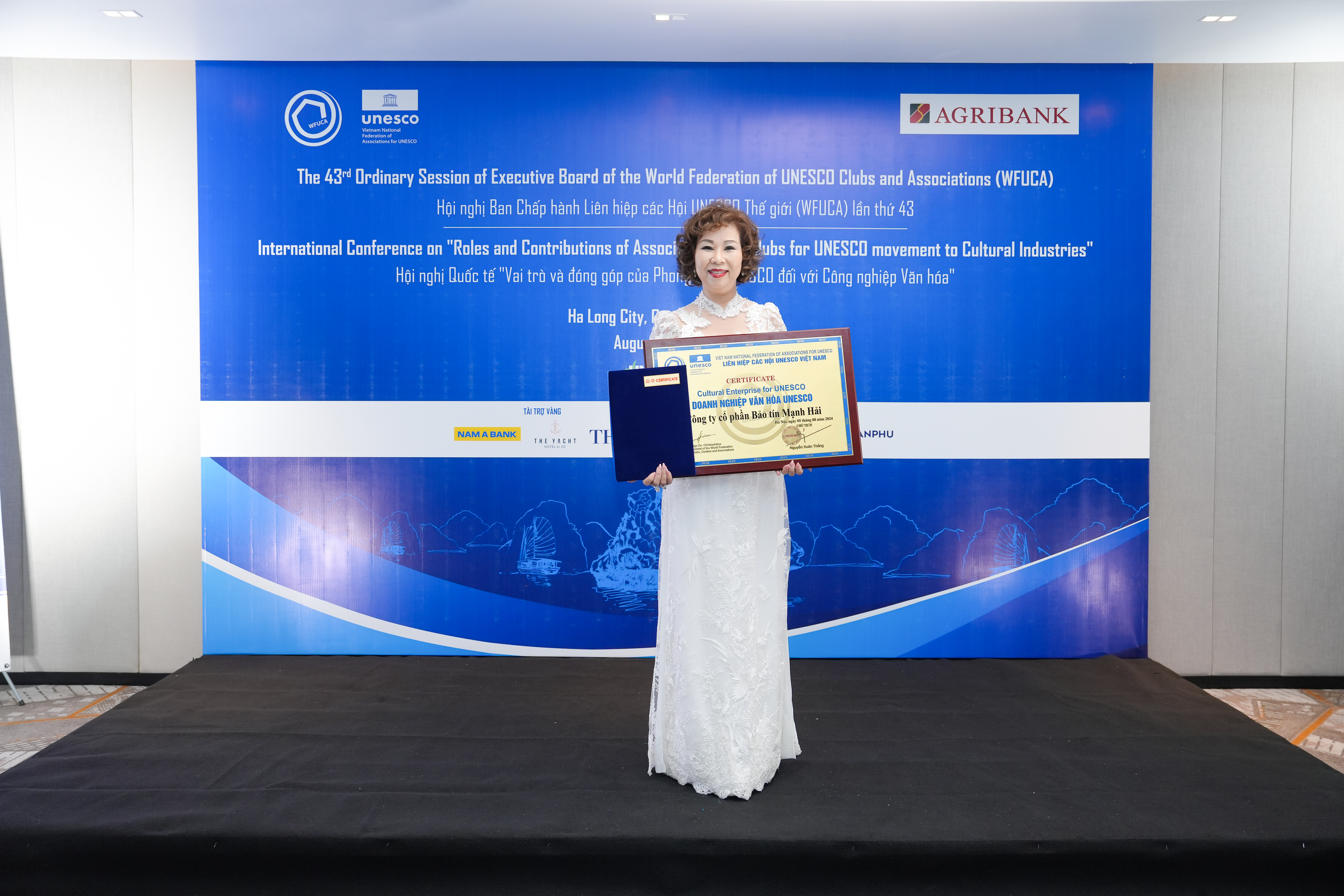 Ngày 5/8, tại thành phố Hạ Long, tỉnh Quảng Ninh đã diễn ra Hội nghị Ban chấp hành Liên hiệp các Hội UNESCO Thế giới lần thứ 43 và Hội nghị quốc tế "Vai trò và đóng góp của Phong trào UNESCO đối với Công nghiệp Văn hóa". Đây là sự kiện quốc tế đặc biệt quan trọng do Liên hiệp các hội UNESCO Việt Nam đăng cai chủ trì, Bảo Tín Mạnh Hải cùng nhiều doanh nghiệp khác vinh dự đón nhận chứng nhận “Doanh nghiệp văn hóa UNESCO”.