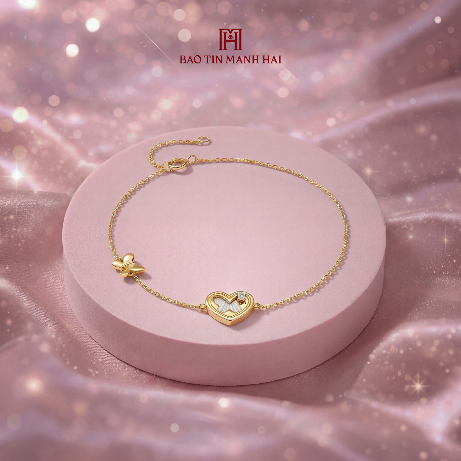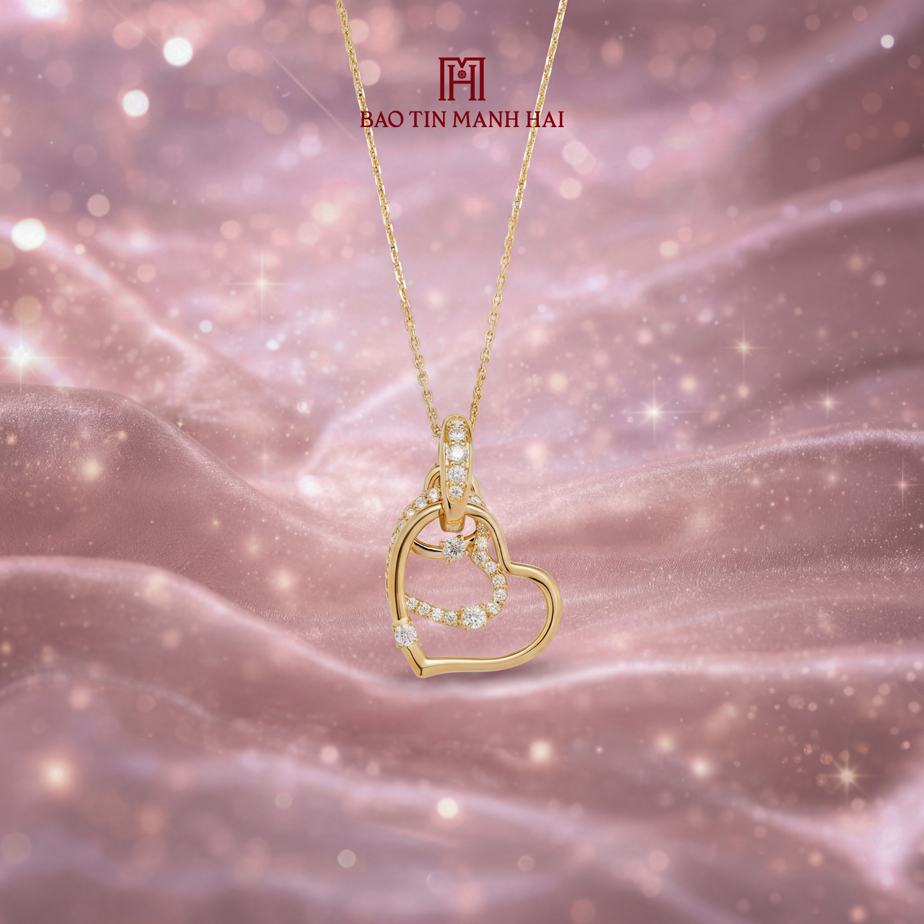 Được chế tác từ chất liệu vàng 10K tinh tuyển, mỗi đường cong trái tim mềm mại đều chứa đựng một sức mạnh kết nối vô hình. Khi trang sức chạm vào làn da, nó không chỉ tôn lên vẻ đẹp thanh tú mà còn như món quà giúp những lời chưa nói được truyền tải trọn vẹn. Những mảnh ghép trái tim lấp lánh đóng vai trò là nhịp cầu, kéo hai ánh nhìn vô thức tìm về nhau, biến những khoảng cách địa lý hay tâm hồn trở nên gần gũi hơn bao giờ hết.