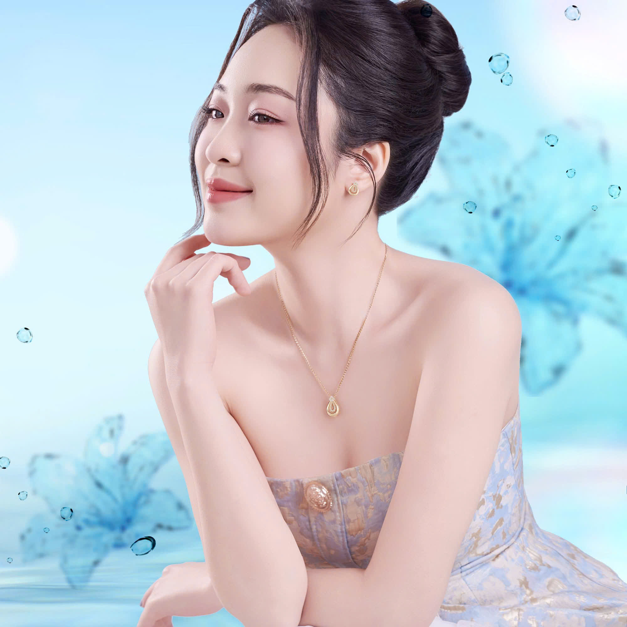Mỗi thiết kế trong BST tựa những giọt nước kết tinh, mang đường nét uyển chuyển như sự dịu dàng của nàng, nhưng vẫn đầy kiên cường như dòng nước không ngừng vươn xa. Đó là vẻ đẹp thanh khiết nhưng sâu sắc, lặng lẽ nhưng mạnh mẽ, luôn chuyển động theo cách riêng để tạo nên dấu ấn.